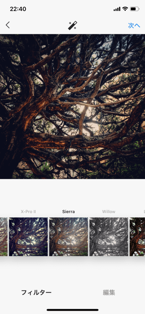 さらに、【フィルター】の“Sierra”をかけてみましょう。