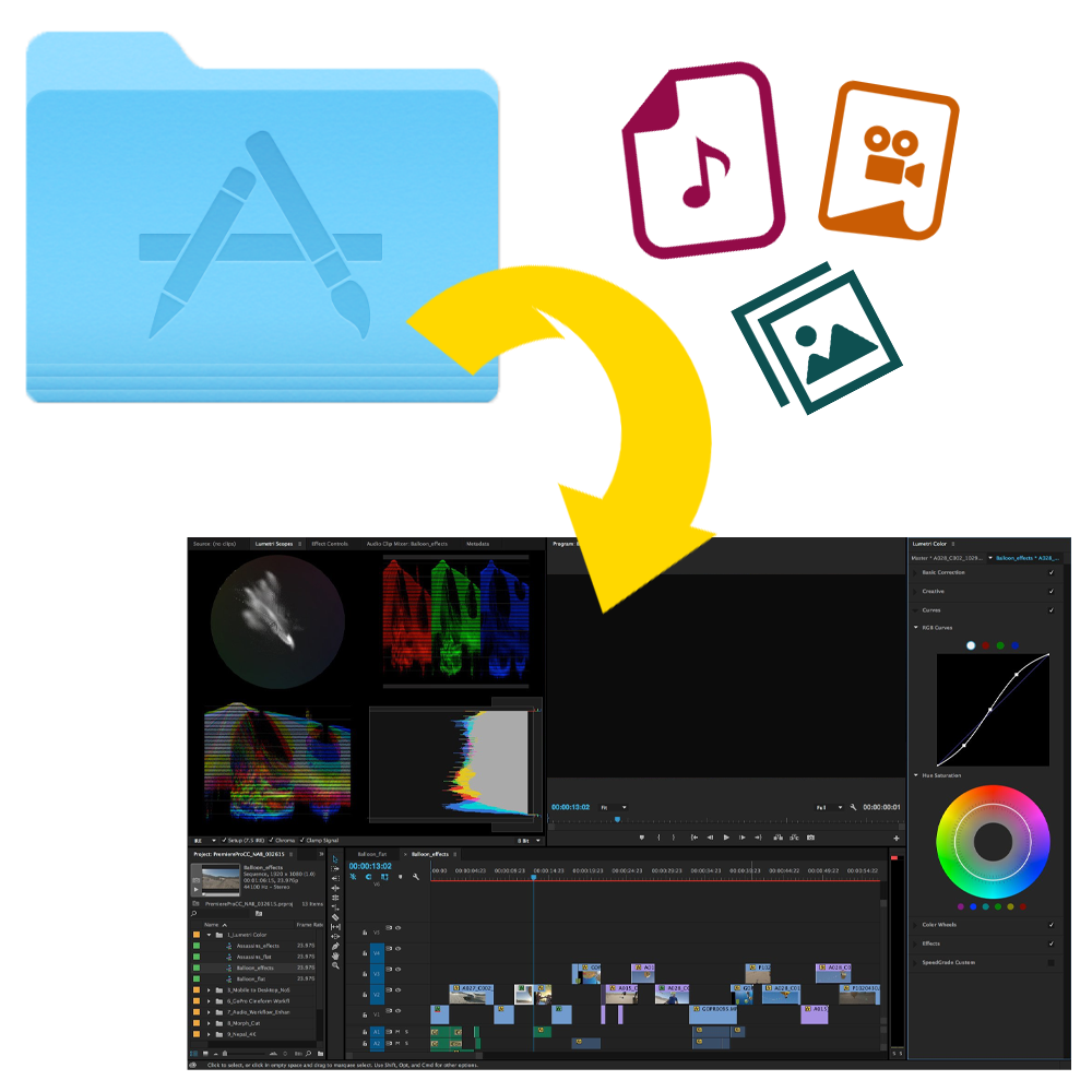 次に大事なことは、動画で使う素材を「ファイルにまとめてから入れ込む」ということ。
