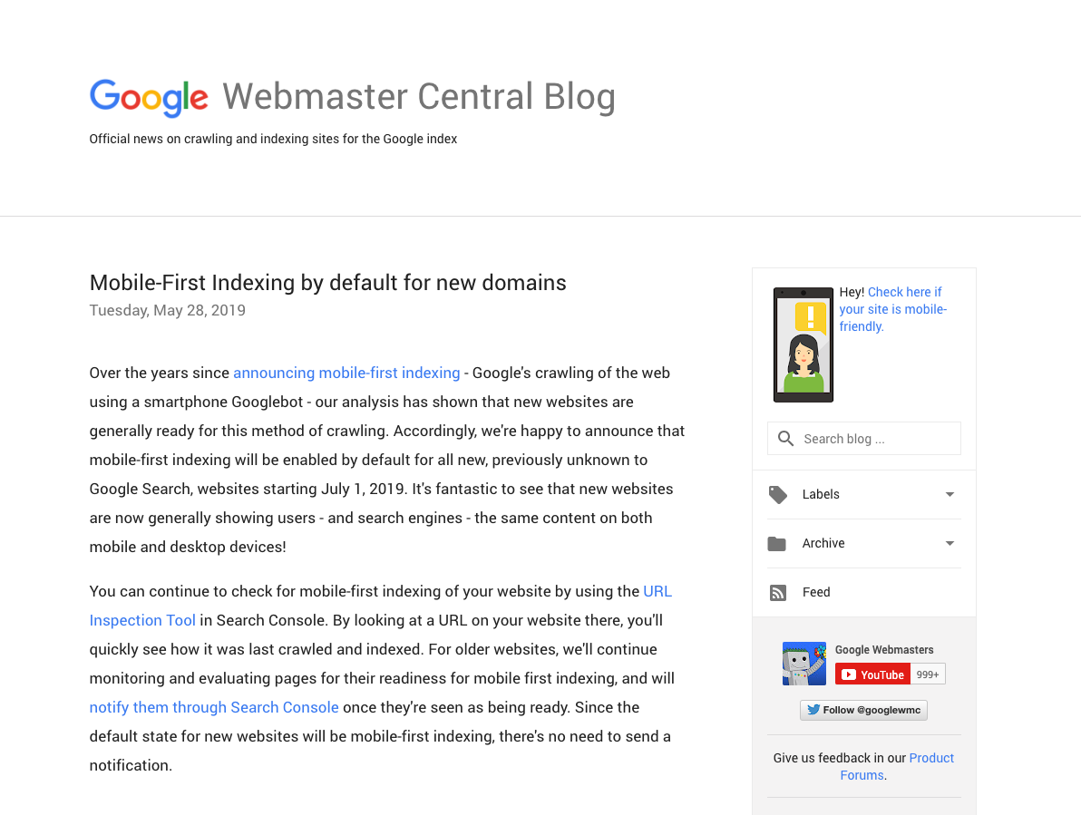 このタイミングではまだドメイン単位で段階的に適用されていっていましたが、とうとうGoogleが公式ブログで今年の7月1日からモバイルファーストインデックス(MFI)がデフォルトになると発表しましたね。